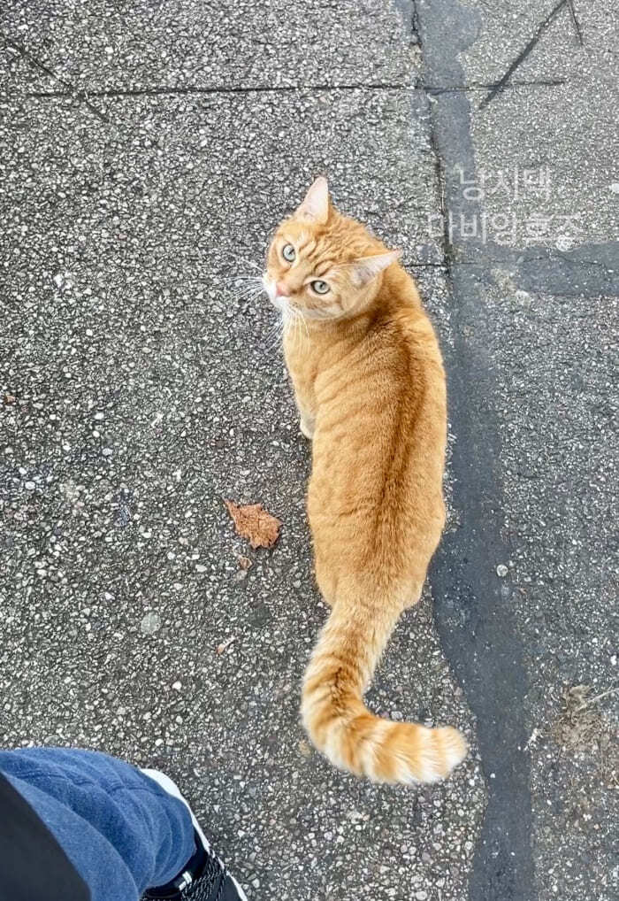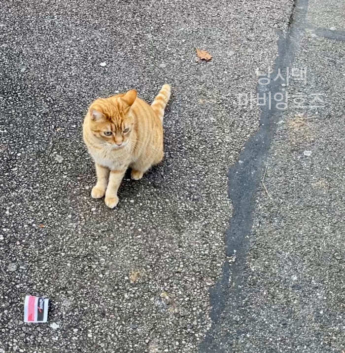 아침일찍 장보고 집으로 돌아오는 길에 이웃집 외출냥이를 만났다.