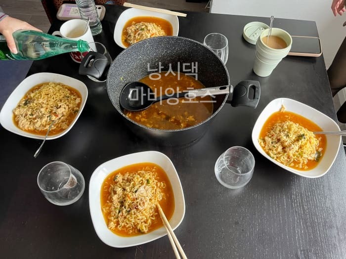 다들 한국 라면이 역시 최고라며 극찬을 하면서 아주 맛있게 먹었다. 국물까지 모두 흡입했다.