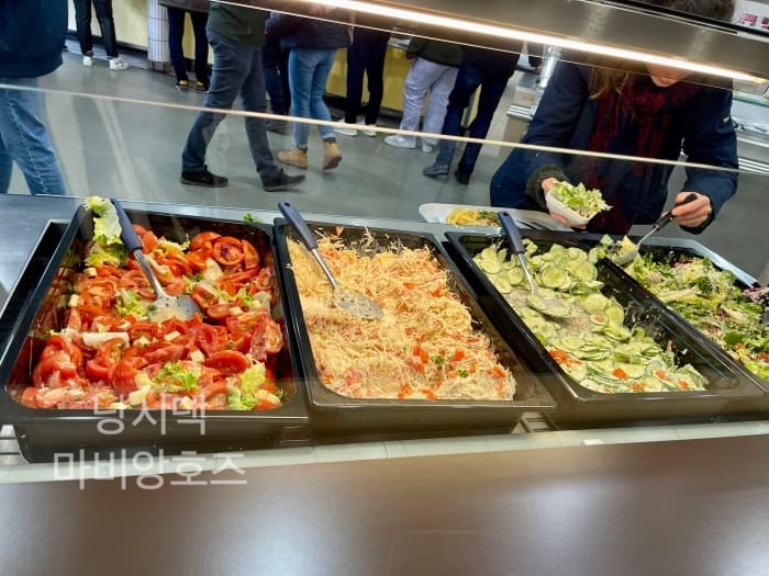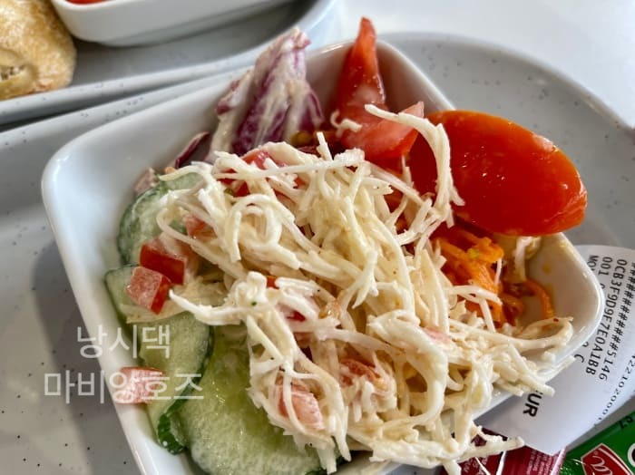 샐러드도 남김없이 다 먹었다. 샐러리 뿌리, 오이, 토마토 등등... 샐러드 속에 치즈나 참치가 섞여 있었다. 이렇게 신선한 샐러드를 셀프서비스로 먹을수 있다니!