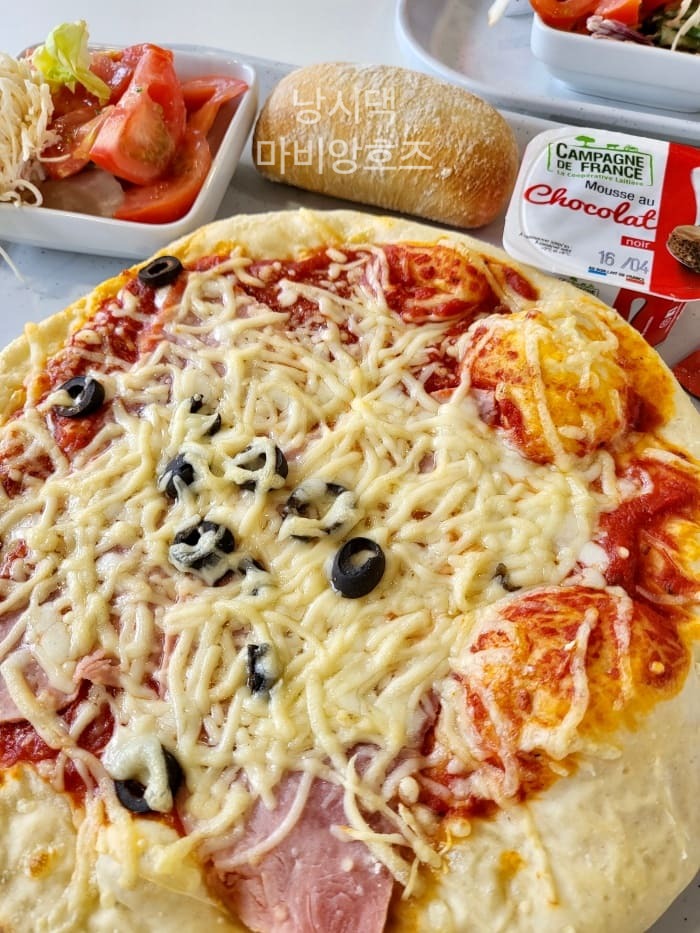 갓 구워져 나온 피자를 한판씩 받고 급행복해진 우리ㅎㅎ