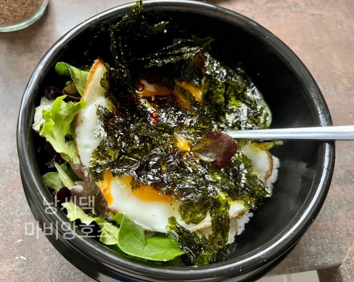 뜨거운 밥위에 샐러드랑 조미김 왕창 넣고 계란 반숙후라이 두개에, 시판 비빔장+ 간장+ 참기름 넣고 쓱쓱 비벼먹었더니 어찌나 맛있는지... 마음이 풀리네...