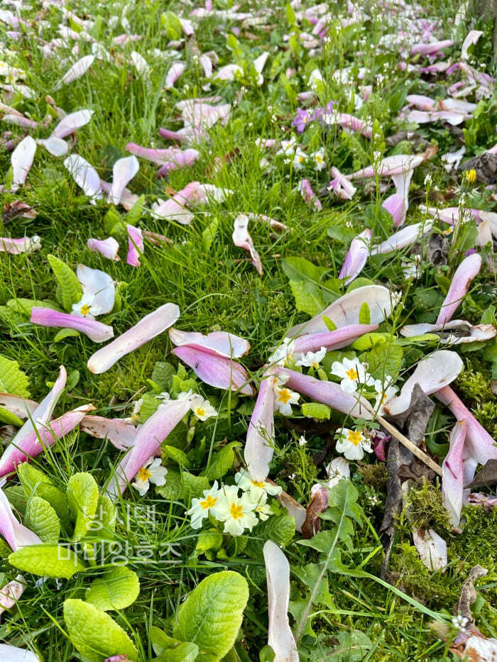 아름드리 커다란 꽃나무가 온전히 이 녀석 차지였다. 요즘엔 온종일 나무아래 있는 녀석.