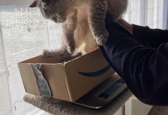 내가 끌어안고 사람 체중계에 쟀는데 정확하지 않은것 같아서 자서방이 방법을 생각해냈다.