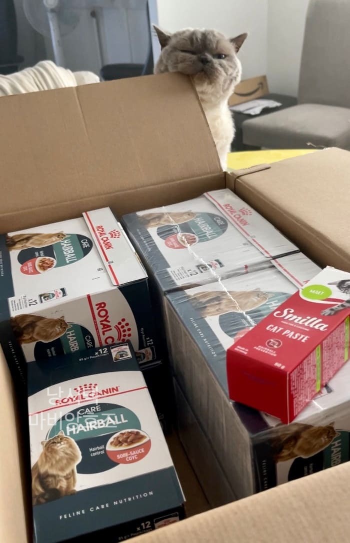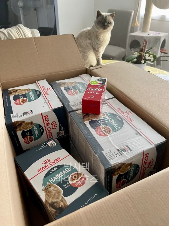 우선 간식도 많이 먹이고, 헤어볼 컨트롤 제품 위주로 사료를 바꾸기로 했다.