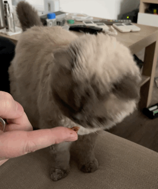 사료먹을땐 가리는거 없이 잘 먹는데 간식에는 호불호가 조금 있는것 같다.