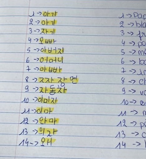 읽고 뜻풀이를 한번씩 한 다음에 받아쓰기를 하는데 정말 배우는 속도가 빠르다. (가르쳐주는 입장에서 성취감이 꽤 크다!)