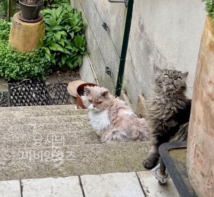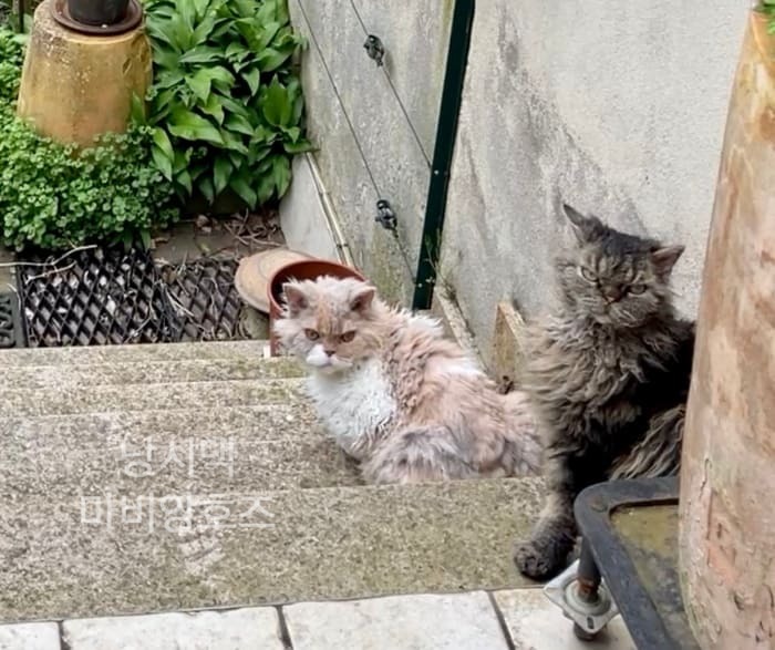 "저 녀석들이 우리 고양이들을 괴롭히려고 왔구나."