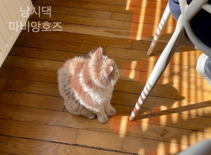 시댁에서 식사를 하고 있으면 꼭 식탄주변을 알짱거리며 야옹거린다.