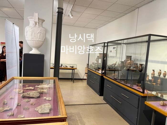 "분실되고 파괴된 작품들도 있었지만, 눈앞에 두고도 알아보지 못했던 작품들도 었었답니다. 예를 들면 여기 구석에 있는 이 도자기는요, 5세기때 선박에서 음식등을 저장하던 용도로 사용되던 것인데, 박물관이 복원되고나서도 몇년동안 관심 받지 못한 채 우산꽂이로 사용되고 있었답니다."