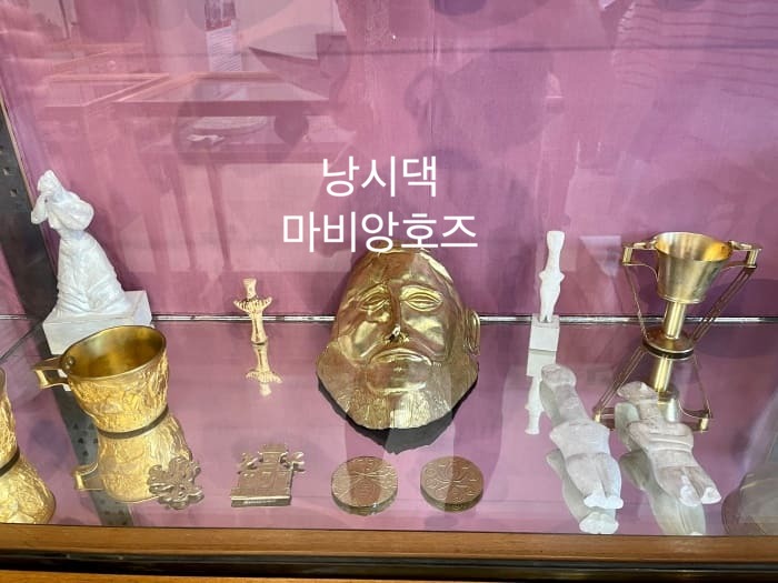 "아, 저건 시신 얼굴에 씌우던 거예요. 진짜는 아니고 카피예요. 아, 이것들은 진짜예요! 이리로 와보세요."