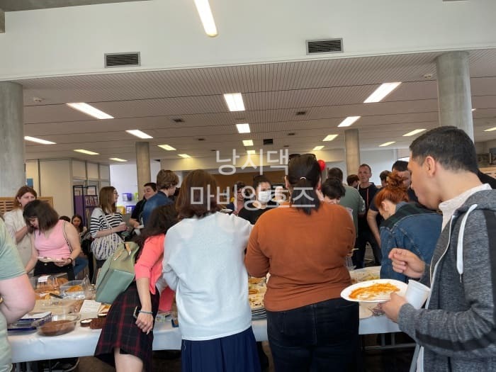음식 테이블과 멀어지고 싶은 마음이 없었던 나는 바로 뒤에 자리잡고 있었는데 몇몇 친구들이 옆에 와서 합류했다. 이들도 내 계획을 눈치챈 것이다.