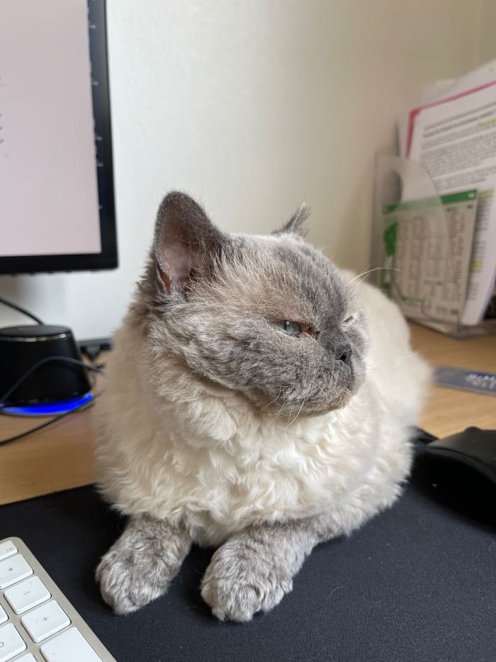 우리 무스카델은 요즘에도 내가 책상앞에만 앉으면 껌딱지처럼 올라와서 나를 지켜본다.