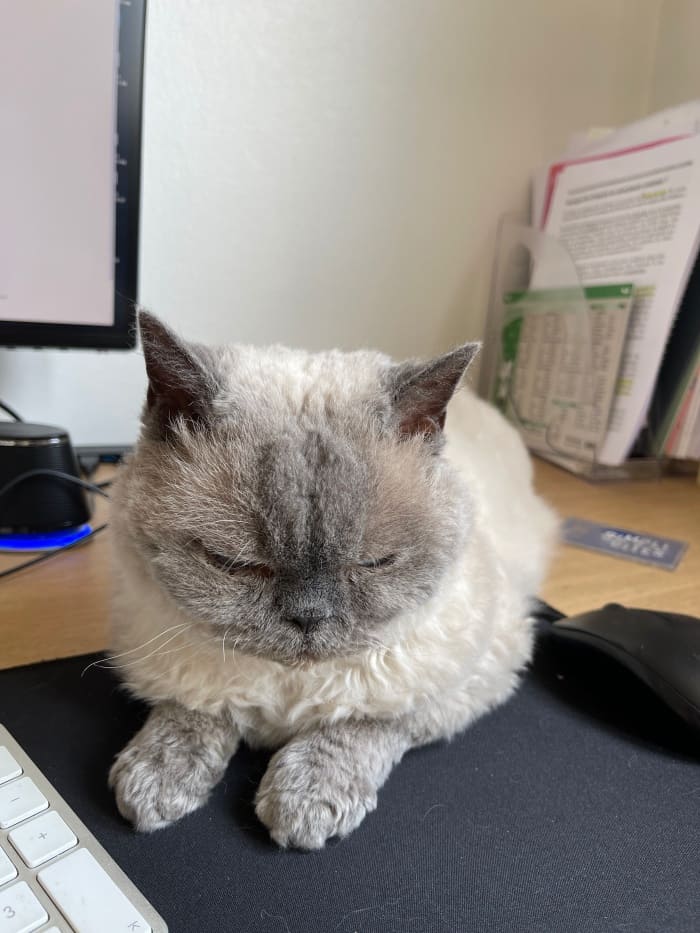 우리 무스카델은 요즘에도 내가 책상앞에만 앉으면 껌딱지처럼 올라와서 나를 지켜본다.