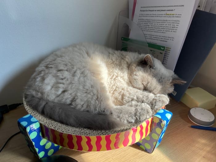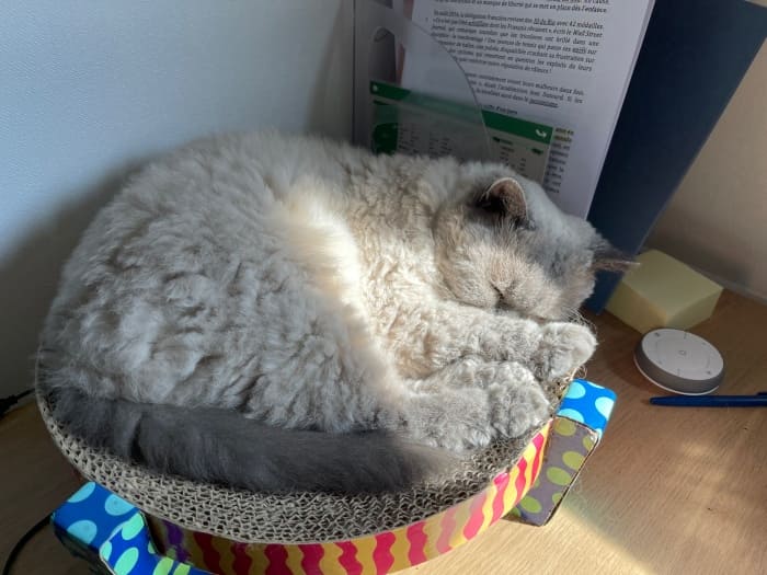 막힌 한쪽 콧구멍으로 태평하게 졸고 있는 무스카델.