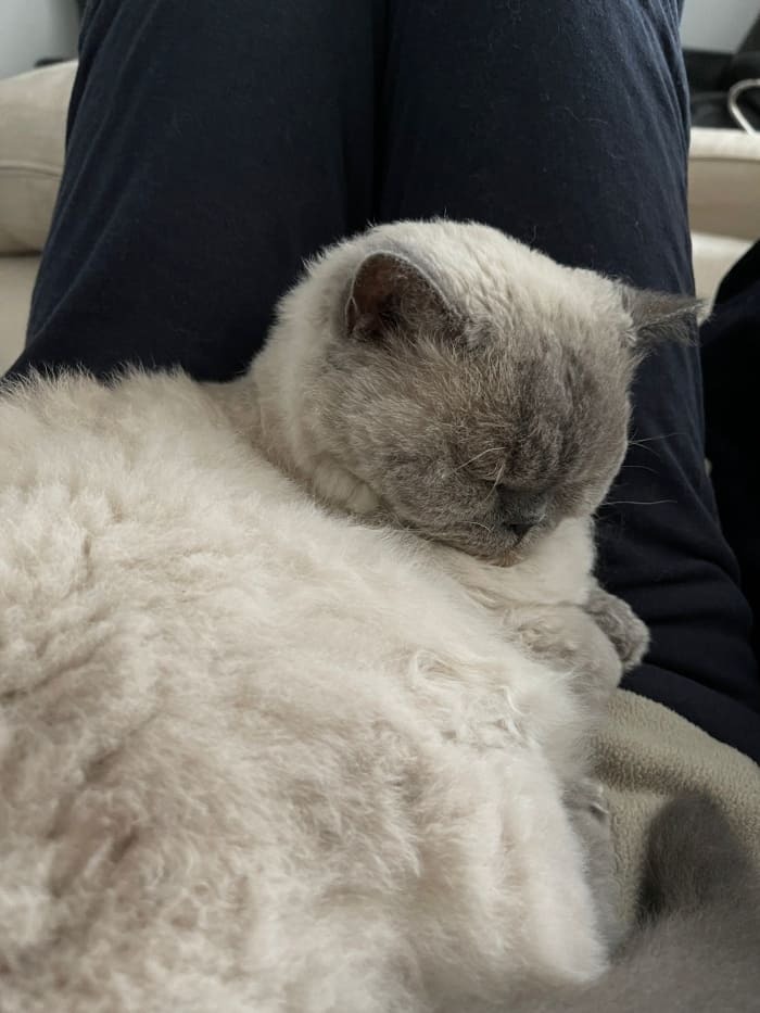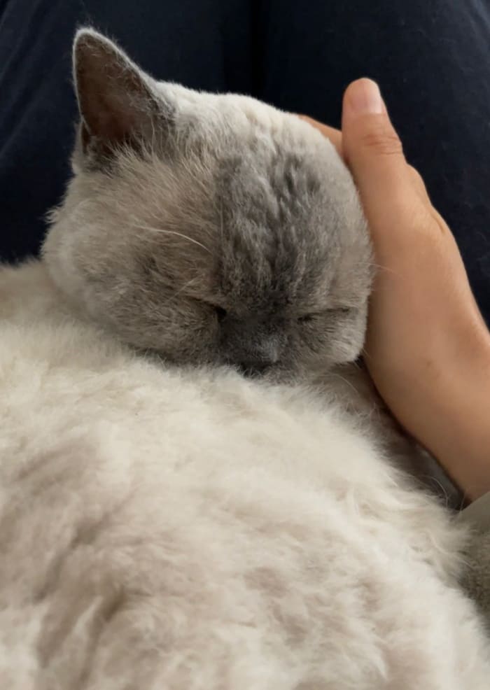 꾹꾹이를 끝낸 무스카델이 편한 자세로 내 배위에 웅크리더니 눈을 스르르 감았다.