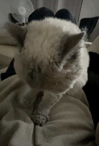 고양이들이 꾹꾹이를 하는 이유에 대해 인터넷에 보면 다양한 의견들이 많은데 내 개인적인 의견으론 (적어도 무스카델의 경우에는) 자기가 편히 쉴 자리를 다지는 의식정도인것 같다. 물론 집사와 친밀감이 당연히 바탕이 되어야 하는거겠지만.