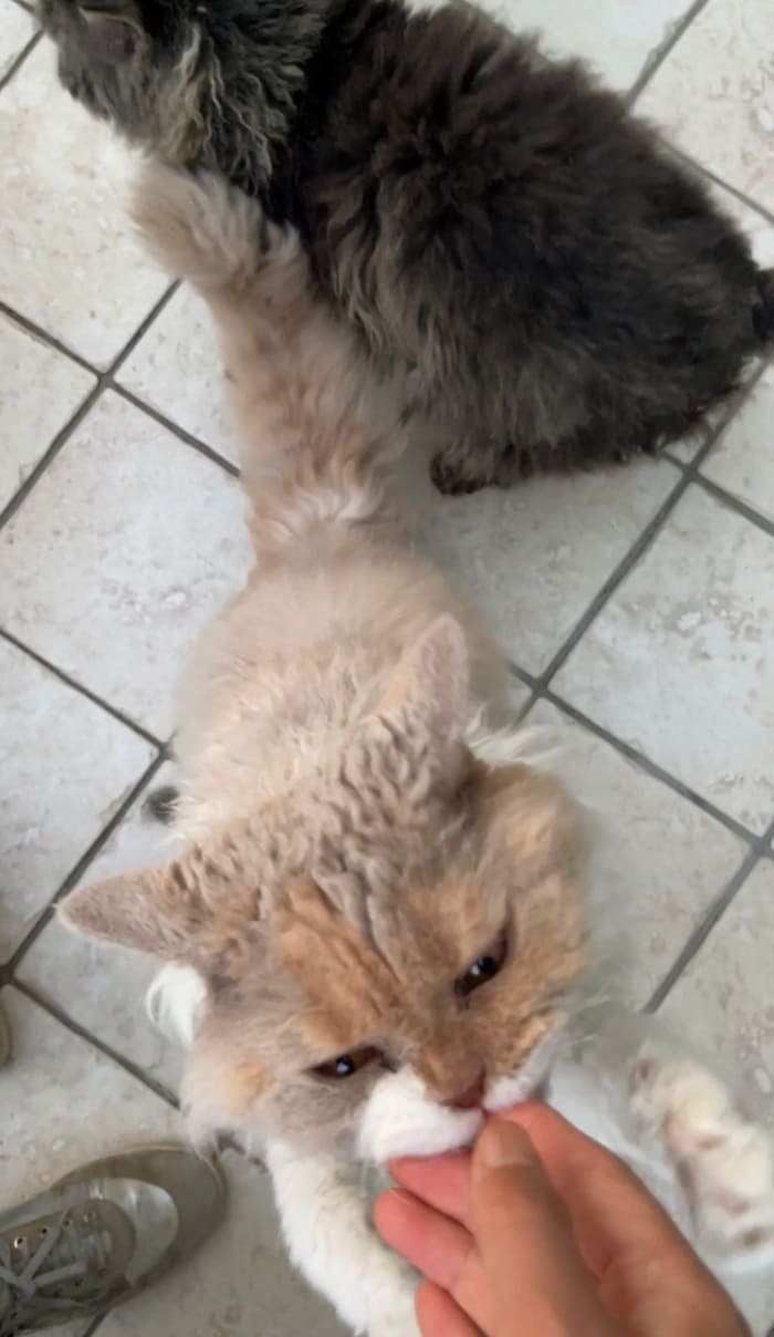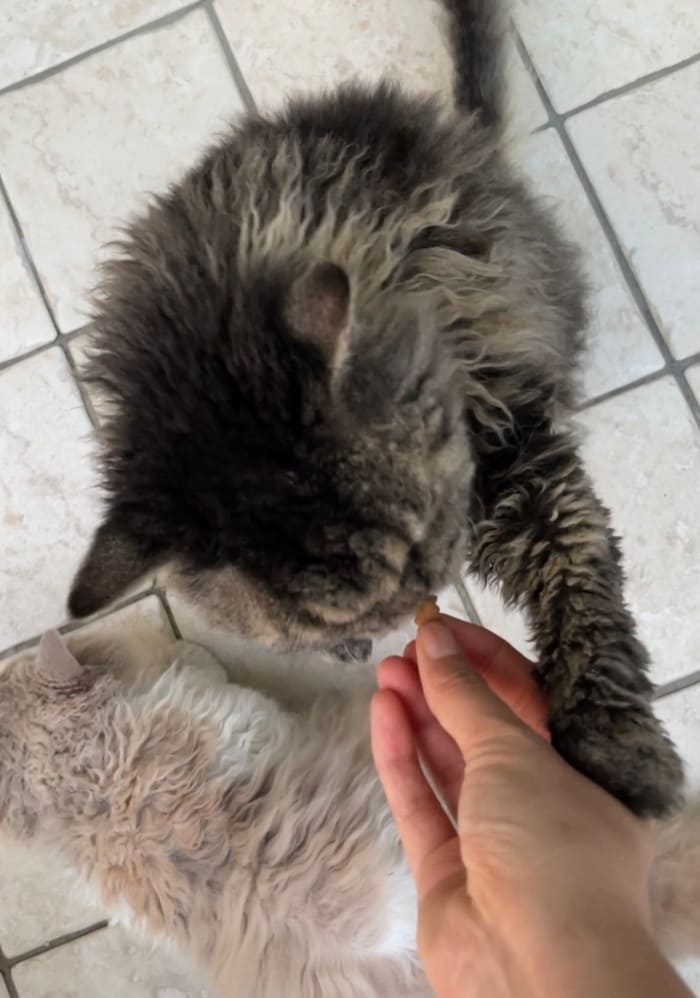 세 냥이 모두 내 손이 다칠까봐 조심조심 간식을 받아먹는 모습도 너무너무 사랑스럽다!