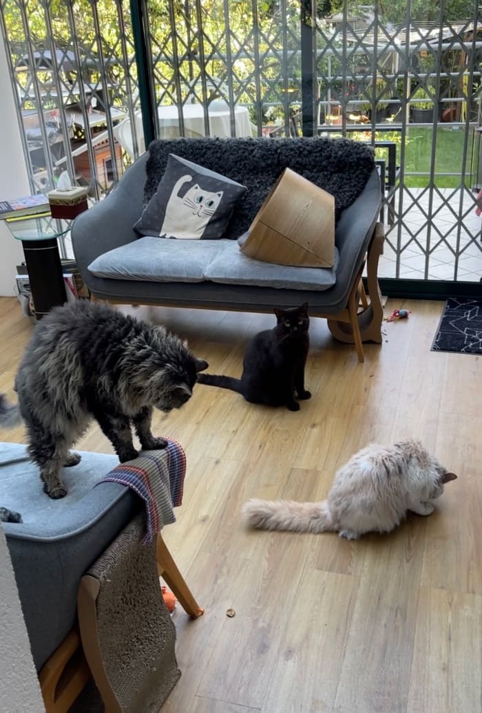 시부모님은 2주간 모리셔스 섬으로 여행을 떠나시고 시댁에는 고양이 삼남매만 덩그러니 남았다.