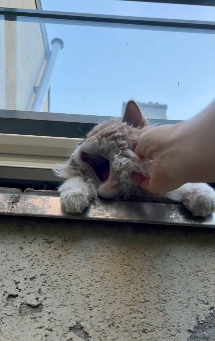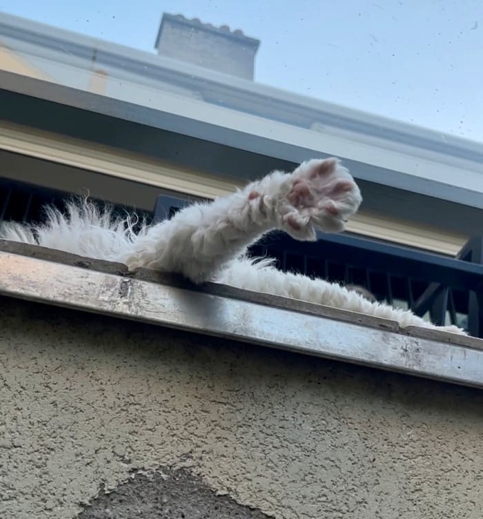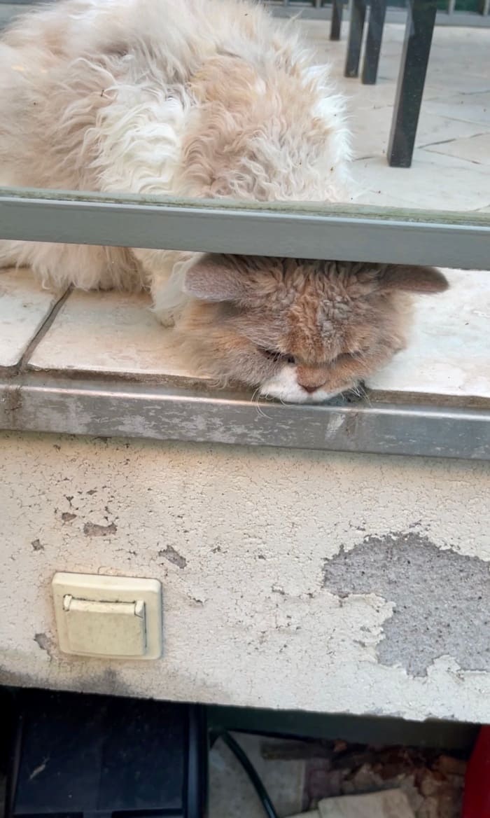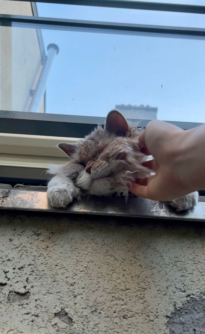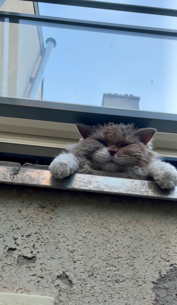 그때 막내 고양이 탈린이 테라스위에서 나를 구경하고 있는 모습을 발견했다.