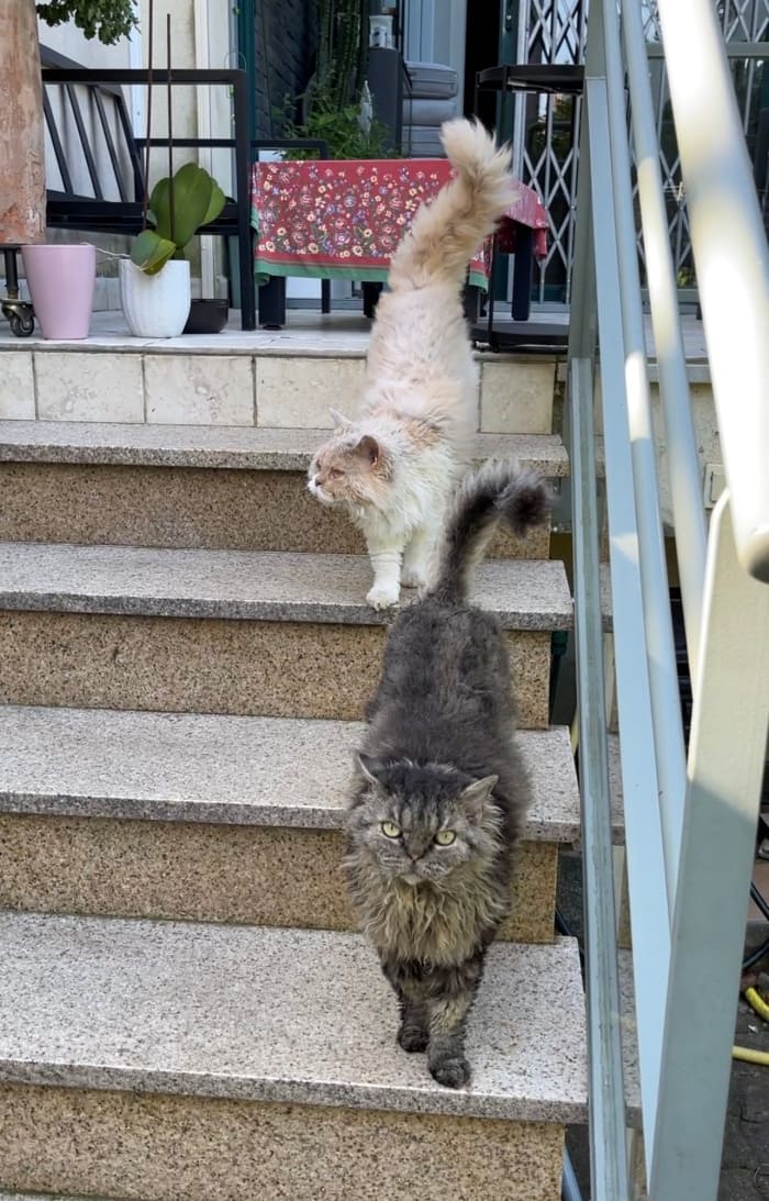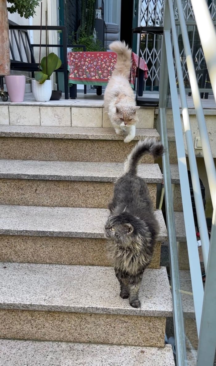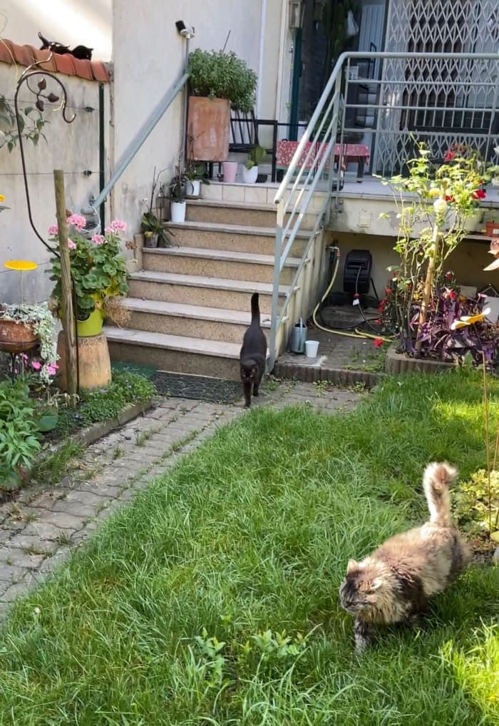 정원으로 내려가면서 내 뒤를 따라오고 있는 고양이들을 관찰했다. 과연 저 뜨거운 틱스의 시선을 이겨낼 수 있을런지 ㅎㅎ