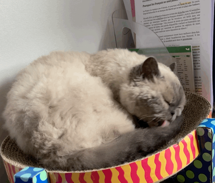 내 책상위에서 낮잠을 곤히 자고 있는 무스카델.