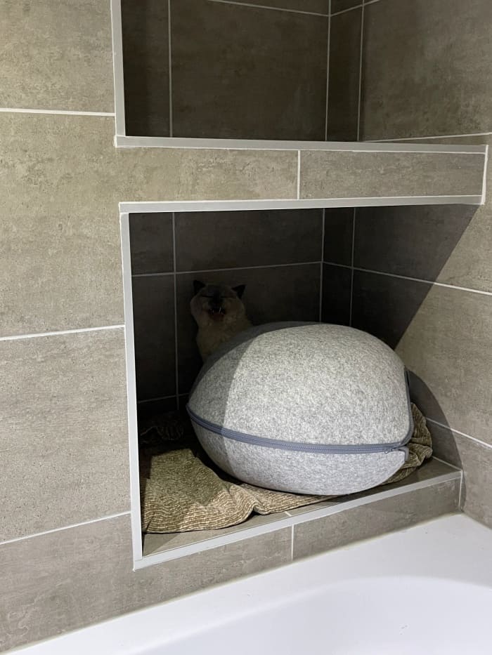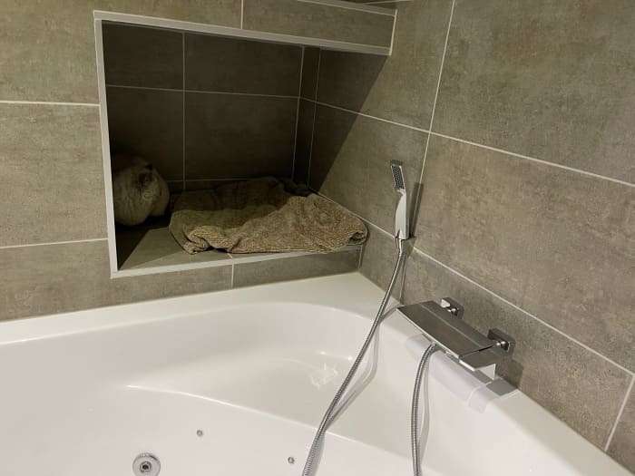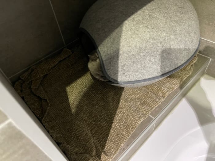 자쿠지위에 안성맞춤인 공간이 있길래 무스카델의 담요를 깔아주었다.