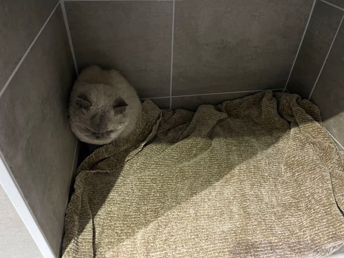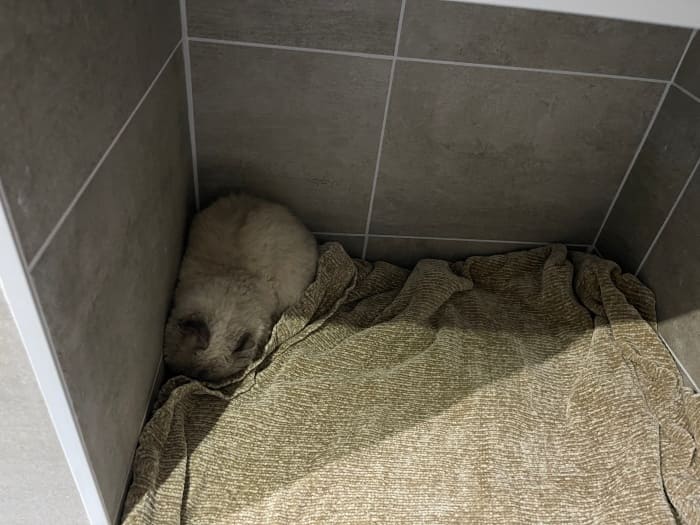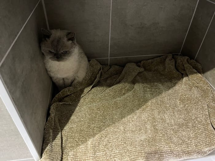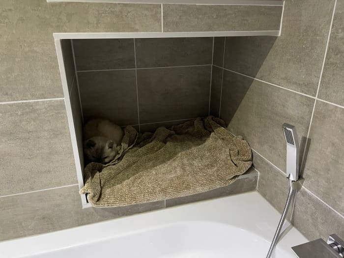 이사하는데 가장 방해를 서로 안받을수 있는 공간이 어디일까 고민하다가 결국 욕실로 무식이의 임시거처를 결정을 했다.