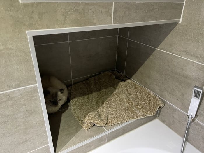 자쿠지위에 안성맞춤인 공간이 있길래 무스카델의 담요를 깔아주었다.