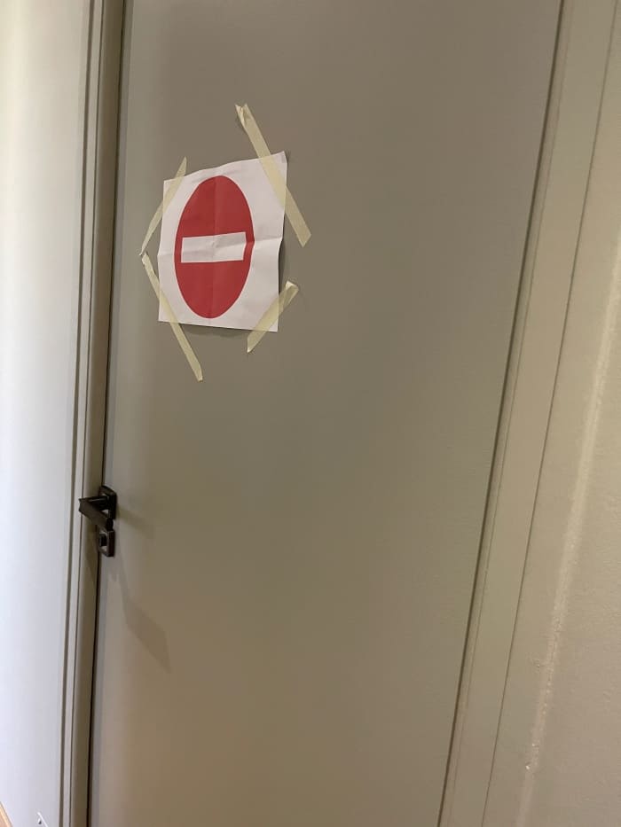자서방은 언제 준비했는지(참 세심하다) 미리 프린트해 온 진입금지 표시를 욕실 문밖에다 붙였다. 이삿짐센터 직원들이 들어가는것을 막기 위해서-
