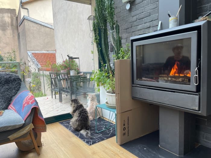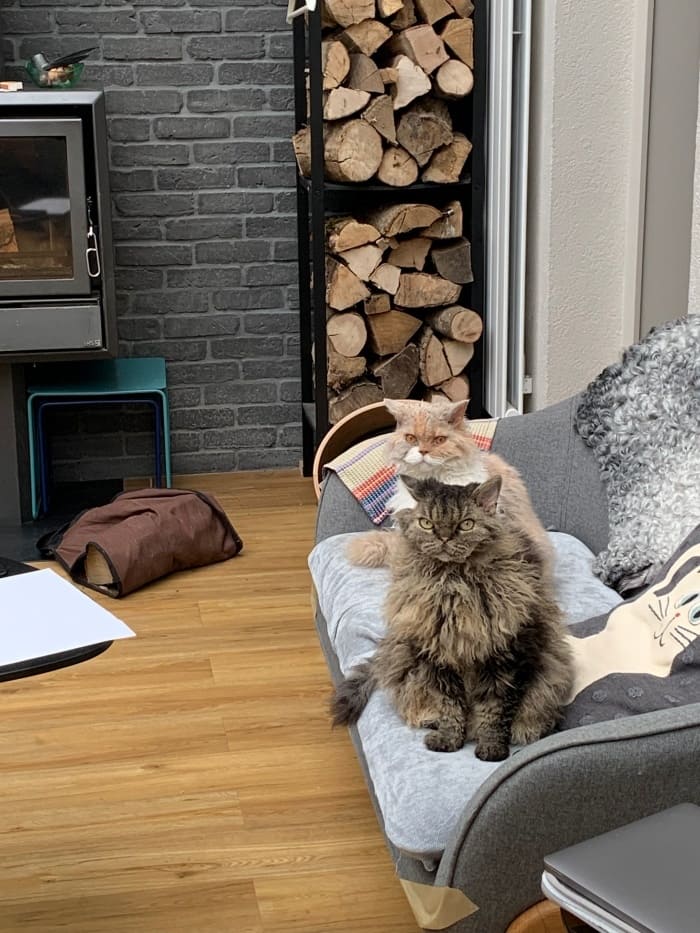 아늑한 벽난로와 향긋한 차 그리고 사랑스러운 고양이들. 조쿠나!