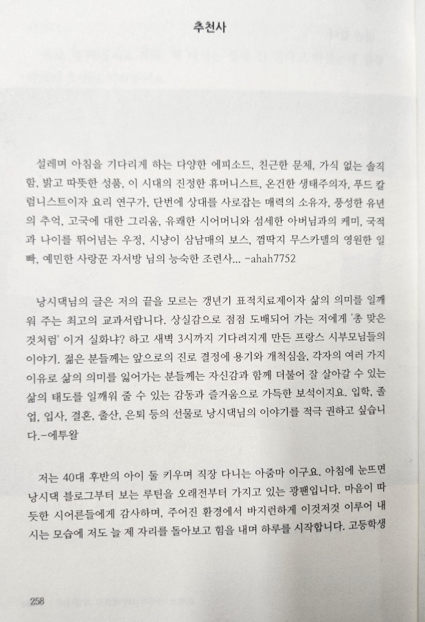 마음에 쏙드는 추천사가 너무 많아서 선정하기 어려웠지만 고심에 고심을 한 끝에 연령차가 서로 다른 두 추천사를 맨 뒷표지에 선정해서 실어보았습니다.
