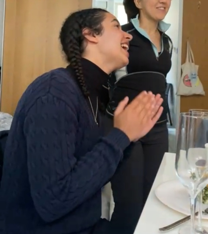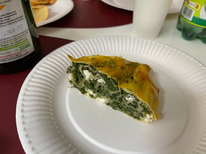 알마는 꽃한다발과 함께 시금치와 치즈가 들어간 전채요리를 만들어왔다.