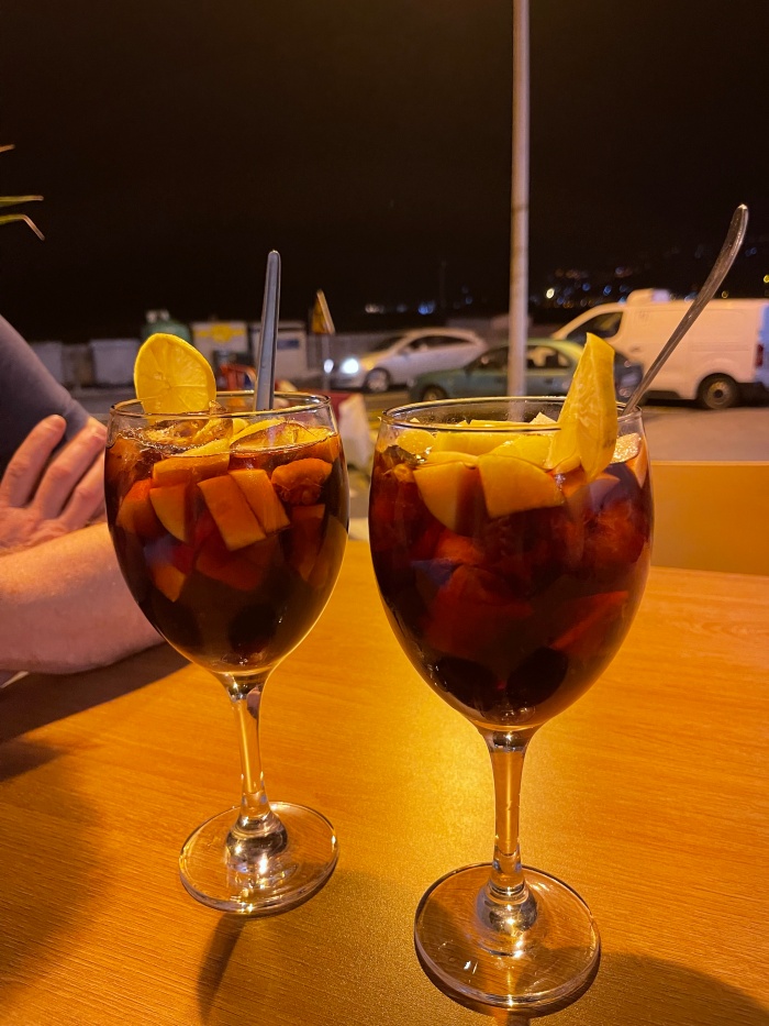 해변에 있던 한 테라스에서 우리는 샹그리아를 마셨다.