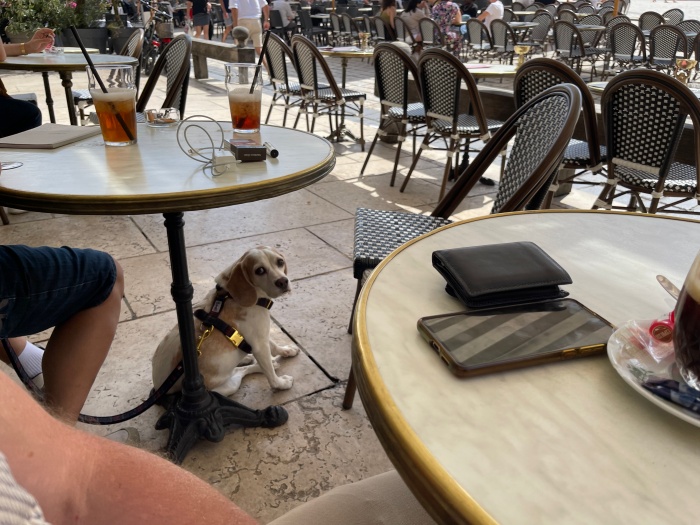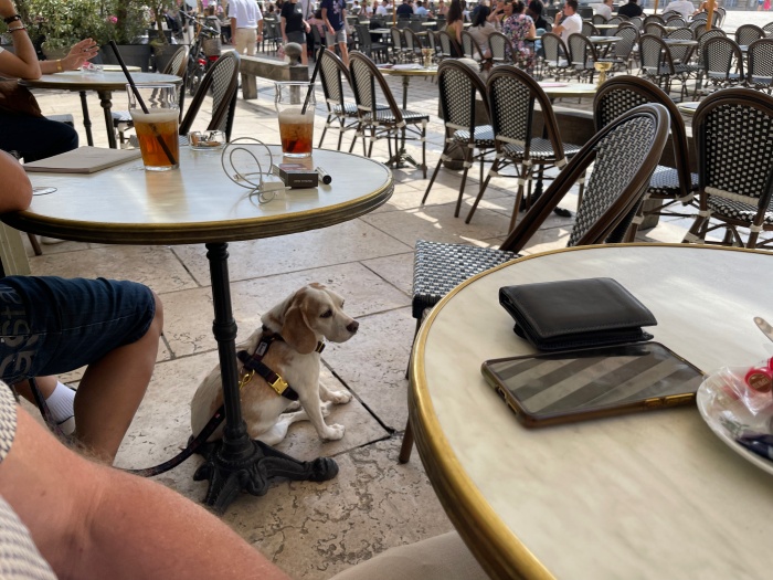 자전거를 타는 꼬맹이도 귀엽고 옆테이블에 얌전하게 앉아있는 강아지도 귀여웠다.