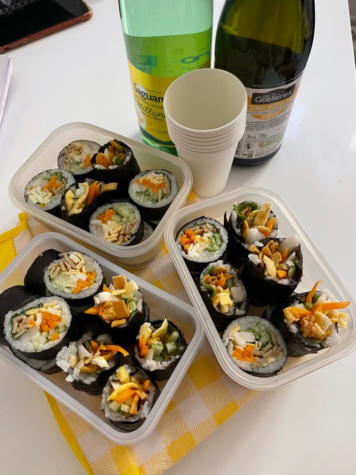 김밥에 깻잎을 한 두장씩 넣었는데 외국인 친구들은 깻잎향을 못느끼는것 같았다. 다음부터는 한국인친구들이랑만 먹어야지 ㅡㅡ;
