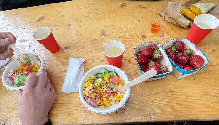 공연장 주변으로 푸드트럭이 여러개 있었는데 버거씨가 가더니 딸기랑 포케를 사왔다.