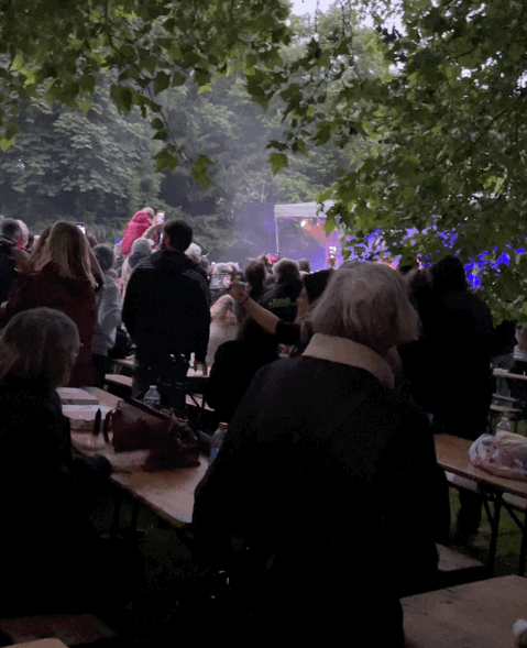 공연이 시작되었는데 빗방울이 살짝 떨어졌다. 하지만 우리는 나무아래에 있어서 한방울도 안맞았다 헤헤