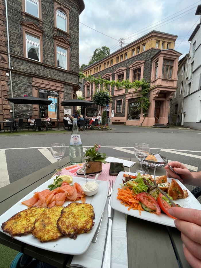 점심을 맛나게 먹고나서 우리가 다음으로 도착한 도시는 베른카스텔 쿠에스(Bernkastel-kues)라는 곳이었다. (사실 그 사이에 호수가 예쁜 마을에 잠시 내려서 간식을 먹기도 했는데 그곳 이름은 기억이 안난다.)
