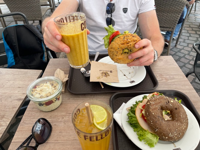 독일맥주를 마셔야겠다고 큰소리 으면서 나는 빠나셰를 시켰다. 맥주와 아이스티를 섞음 음료- 하지만 독일 빠나셰는 맥주맛이 더 진하네. 프랑스 빠나셰는 음료수나 다름없는데 말이다.