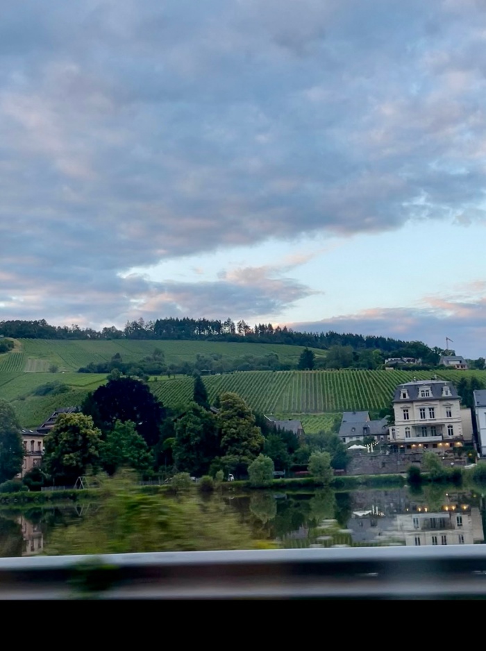 "그럼! 모젤강은 프랑스, 룩셈부르크, 독일까지 이어져. 내가 저녁마다 조깅하러 가는 곳도 모젤강변이고 이곳 독일까지 강변 경치가 너무 예뻐서 드라이브하기 정말 좋지."