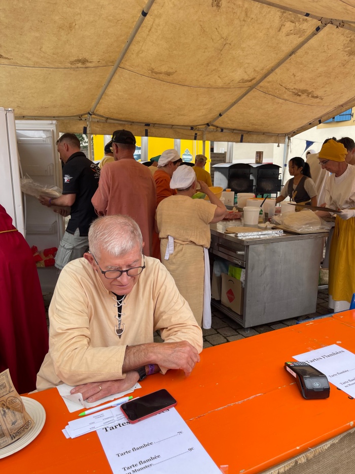 주문받는 아저씨 뒤로 전통복장을 한 채 분주하게 플람키쉬를 만드는 사람들의 모습도 꽤 인상적이었다. 오븐이 여러개라서 즉석에서 빠르게 구워내고 있었다.