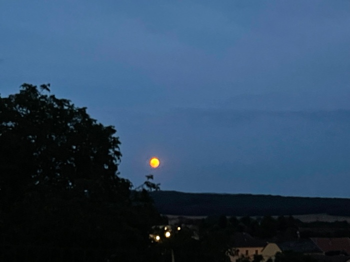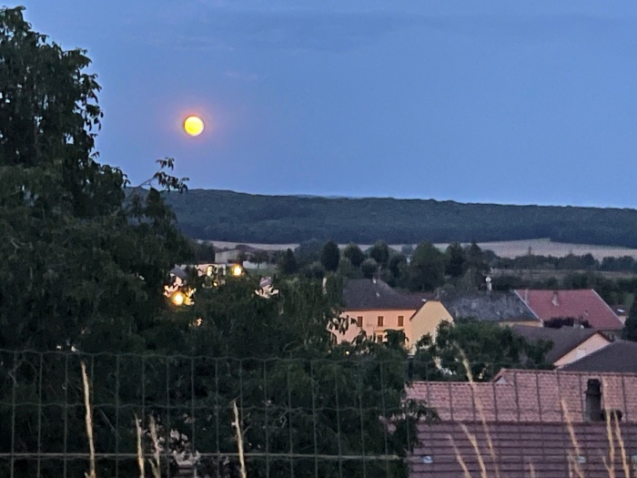 우리는 잠시 서서 동네위로 떠오르는 커다란 달을 구경했다.