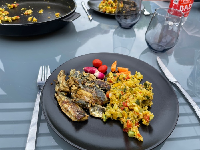 집에 오자마자 버거씨는 점심을 준비했다. 오늘의 메뉴는 정어리 구이.