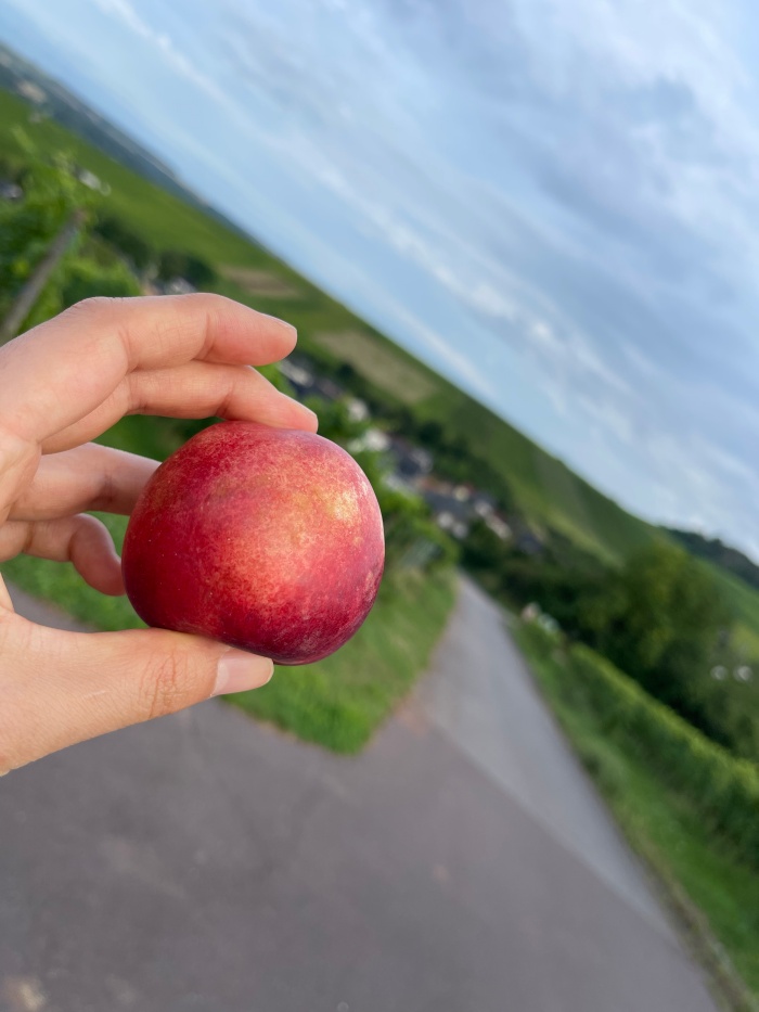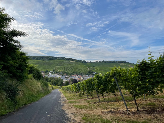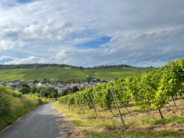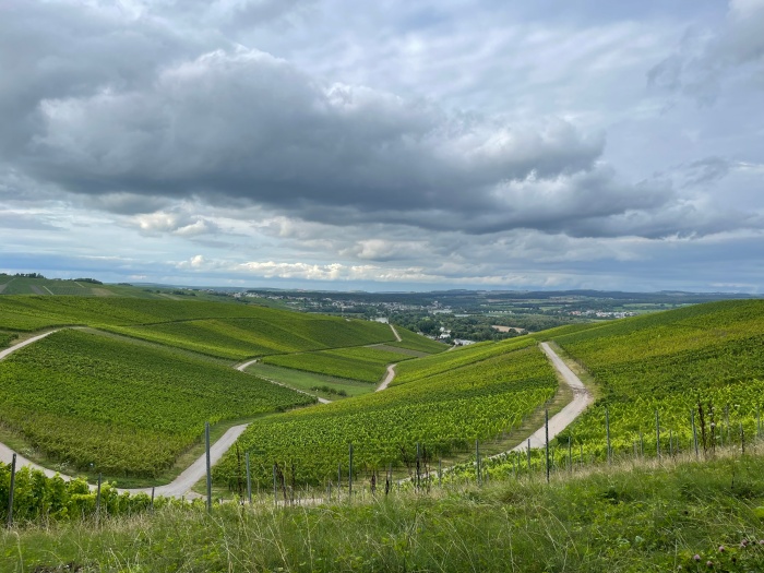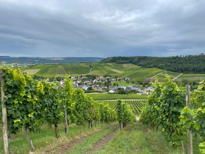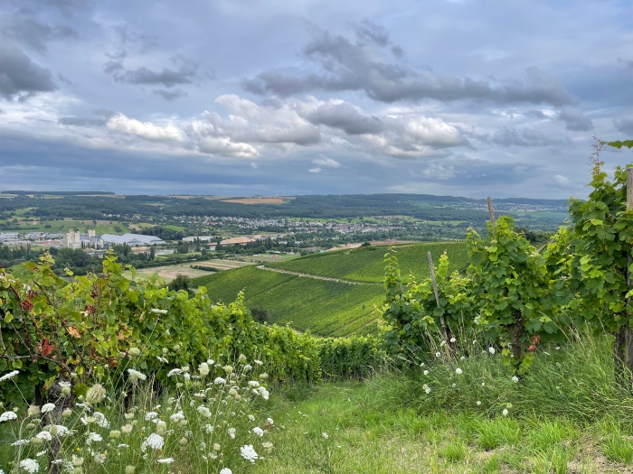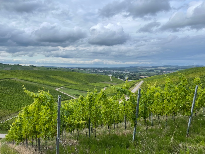 포도밭 가장 높은 곳까지 올라갔더니 저 멀리 모젤강과 함께 룩셈부르크 시내가 보였다. (포도밭의 거대함을 한번 더 확인하기도 했다.)