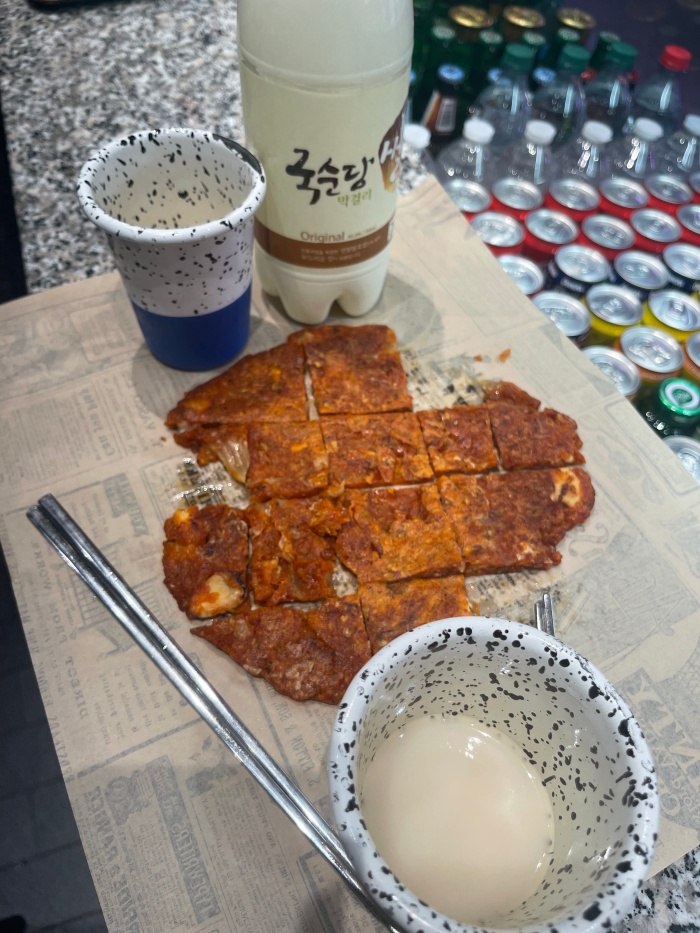 김치전이 맛있기는 했다. 신김치에다 치킨튀김가루를 넣고 문어까지 넣었더니 진짜 끝내줬다.
