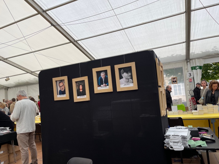 나중에야 안 사실이지만 이곳에 아멜리노통브가 와 있었다고 한다! 내가 읽은 그녀의 책이라고는 '이토록 아름다운 세 살' 하나 뿐이었지만 이곳에서 그녀의 책을 사고 사인도 받았다면 큰 영광이었을것 같다. 나중에 나와 버거씨는 대스타를 만날 기회를 놓쳤다며 매우 안타까워했다. 하지만 우리는 행사장을 세바퀴나 돌았는데...? 아마 그 시간대에 식사를 하러갔거나 없었을 확률이 크긴 하다. 그래도 아깝... 미리 알았더라면... ㅠ.ㅠ