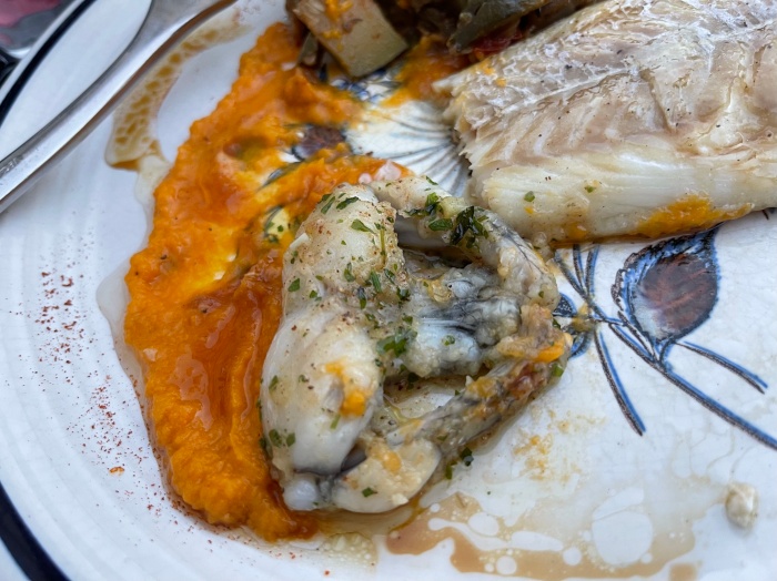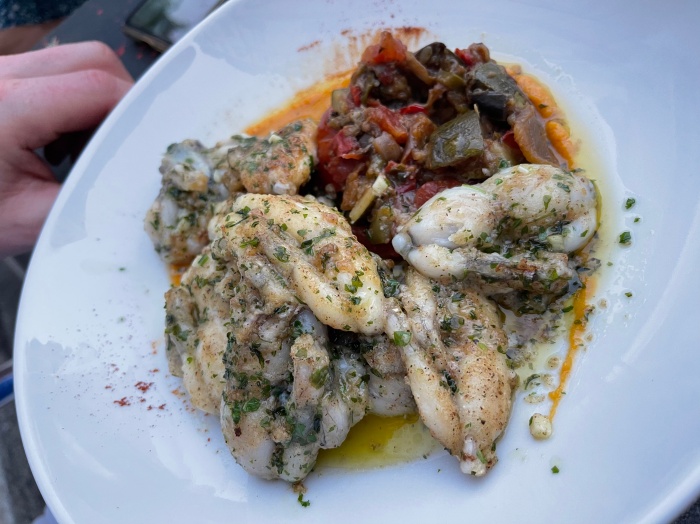버거씨가 개구리요리를 좋아한다고 말한게 이제서야 이해가 갔다. 살이 어찌나 부드러운지, 뼈가 저절로 분리가 되었다. 개구리 허벅지가 이리도 튼실할 줄이야. 살이 꽤 많았다.