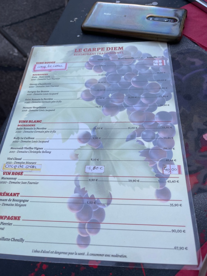 coup de coeur라고 그나마 저렴한 와인이 있길래 이게 뭐냐고 물었더니 이건 그때그때 종류가 바뀌는 일종의 "오늘의 와인" 같은거라고 했다.