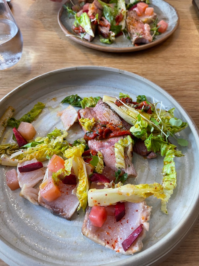 버거씨는 좀 더 저렴한 참치를 시켰는데 맛을 보니 아무맛도 안나는 냉동참치 같았다. 이럴줄 알고 내가 더 비싸더라도 스테이크를 시킨거지...