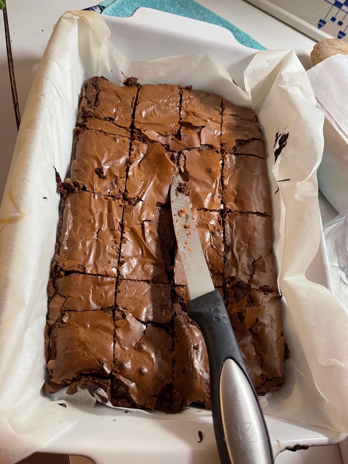 엘라는 이만한 초코케이크를 세개나 들고왔다ㅋㅋ 손도 크지ㅋ너무 크게 잘랐길래 내가 더 작은 사이즈로 한번 더 잘랐다. 디저트가 세가지나 있으니 조금씩 맛보려면 작은 사이즈가 낫지.